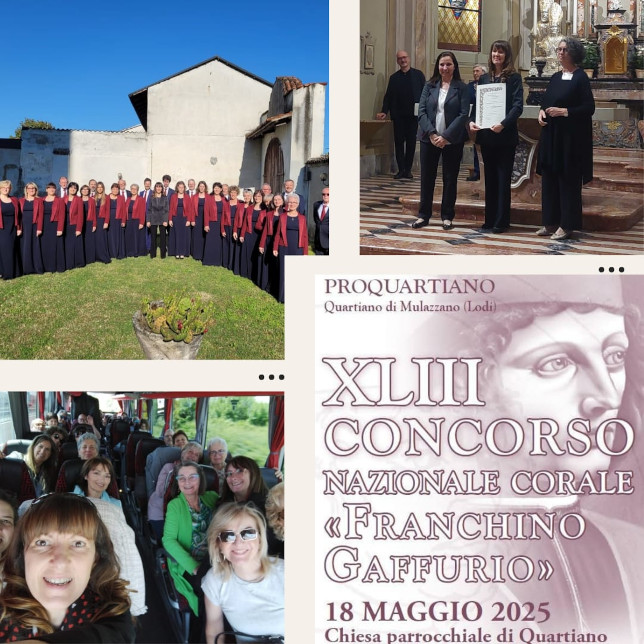 Condividiamo con voi la gioia dell'esperienza vissuta domenica scorsa con la partecipazione al XLIII Concorso Nazionale Franchino Gaffurio di Quartiano in una giornata di sole meraviglioso. Abbiamo partecipato nella categoria Polifonia Sacra Contemporanea e siamo stati giudicati Fascia Argento!